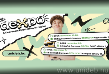 Három helyszínen, Debrecen mellett Szolnokon és Siófokon is megrendezi 2025-ben a DExpót a Debreceni Egyetem. A felvételi előtt állók első kézből tudhatják meg, hogy milyen képzésekkel várja őket a DE, az egyes képzési helyeken milyen karok, szakok érhetőek el, valamint melyek azok a lehetőségek, amik megkönnyíthetik számukra az intézményválasztást.