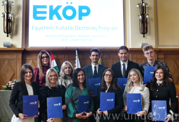 Ünnepélyes keretek között szeptember 30-án, kedden a Főépület Aulájában vehette át oklevelét a Debreceni Egyetem (DE) 154 eredményes pályázója. Az alap- és mesterszakos hallgatók, doktoranduszok, doktorvárományosok, oktatók és kutatók sikerrel szerepeltek az Egyetemi Kutatói Ösztöndíj Program (EKÖP), valamint az EKÖP Kooperatív Doktori Program (KDP) pályázatain.